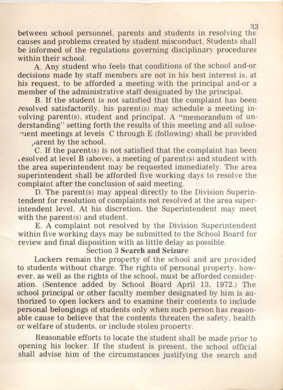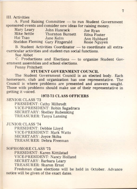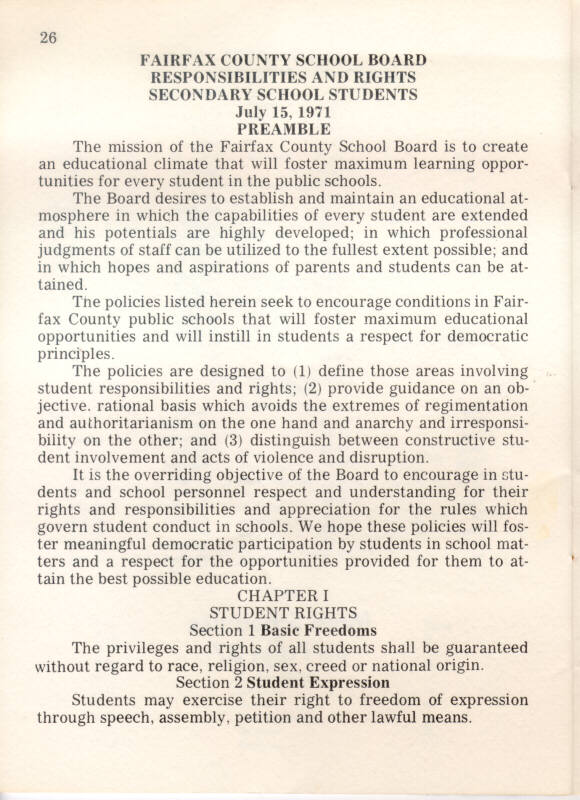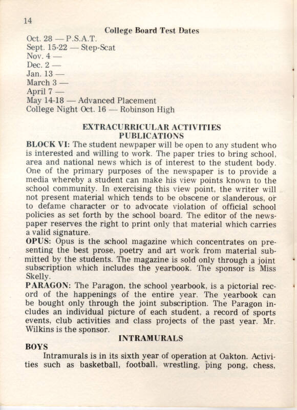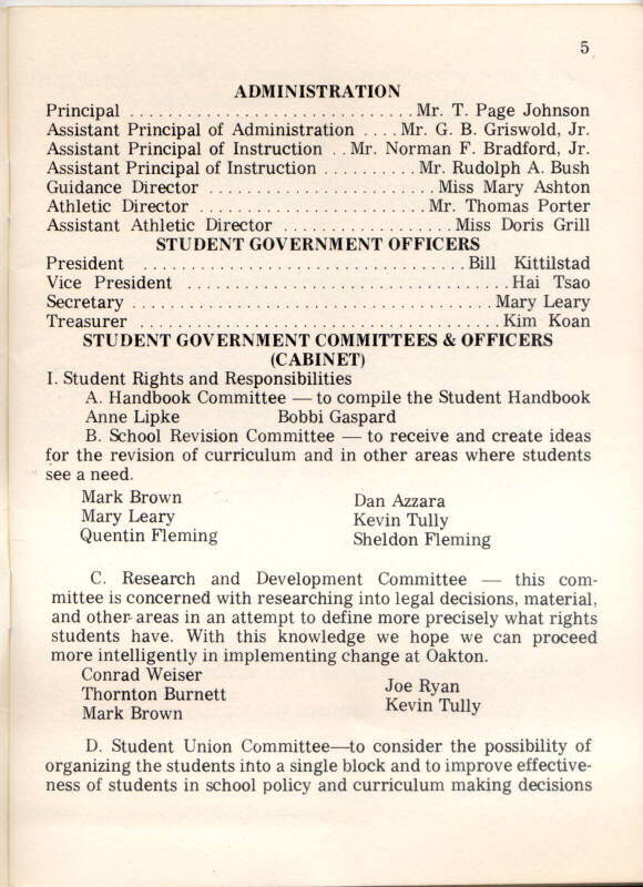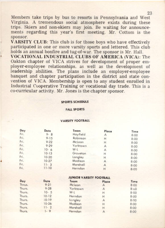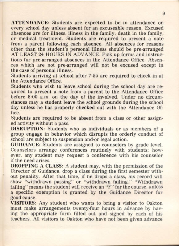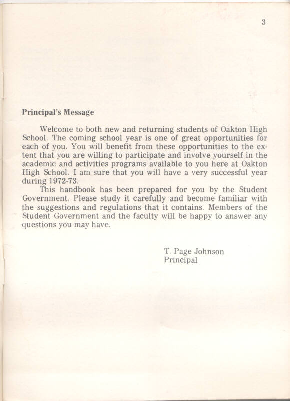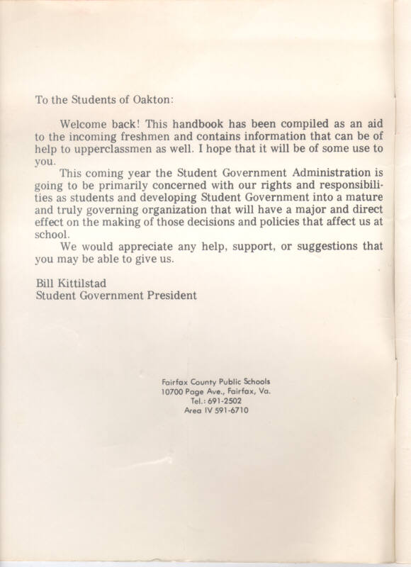 1973 Oakton High School Student Handbook